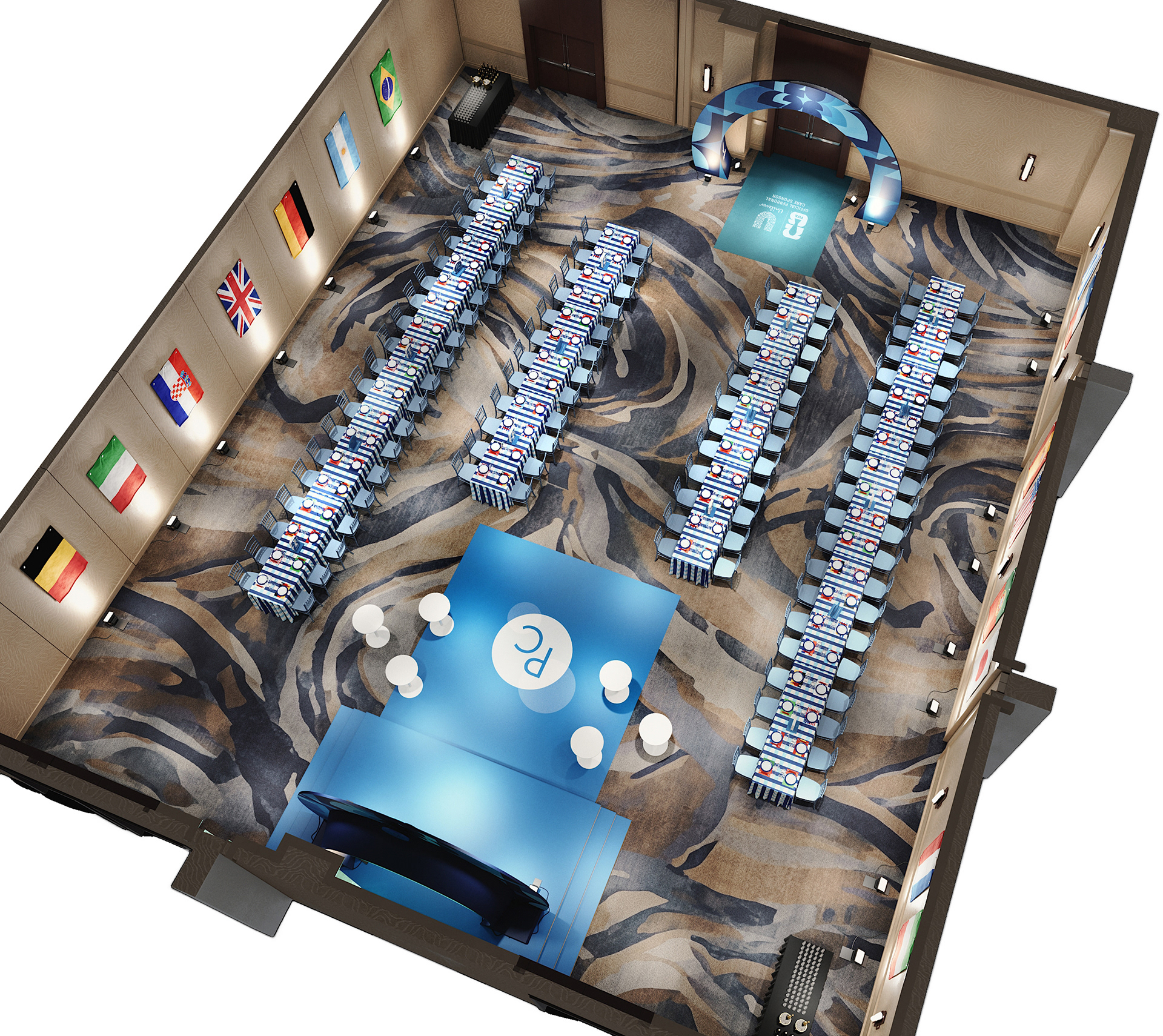 Event Visualization & Experiential 3D Rendering Our studio creates high-end event visualizations that help agencies and production teams present ideas clearly before fabrication. Renderings highlight lighting, materials, guest flow, and atmosphere — ideal for corporate galas, brand activations, tradeshows, and large-scale experiences. Fast turnaround and consistent, presentation-ready quality.